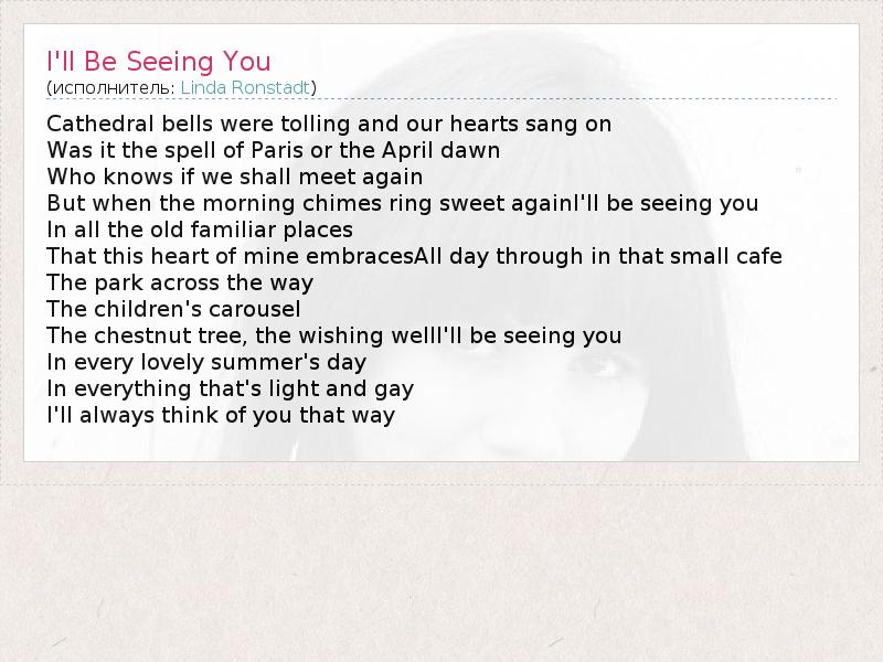 А как ты думаешь, о чем песня "I'll Be Seeing You" ?