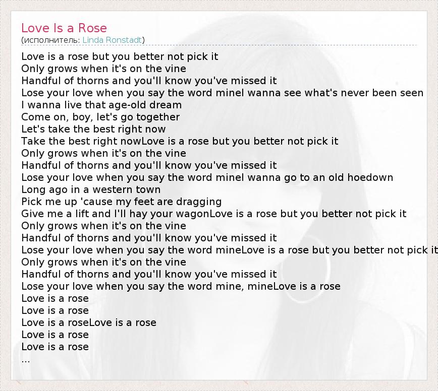 А как ты думаешь, о чем песня "Love Is a Rose" ?