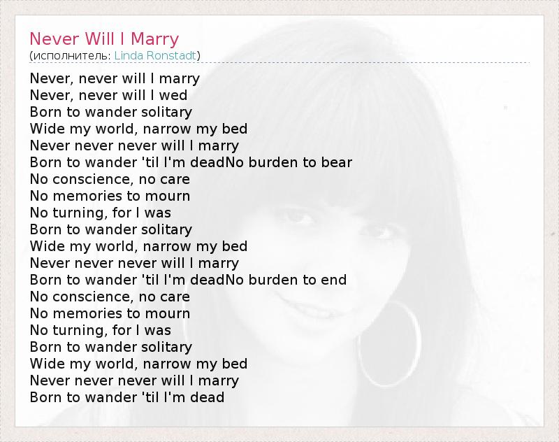 А как ты думаешь, о чем песня "Never Will I Marry" ?
