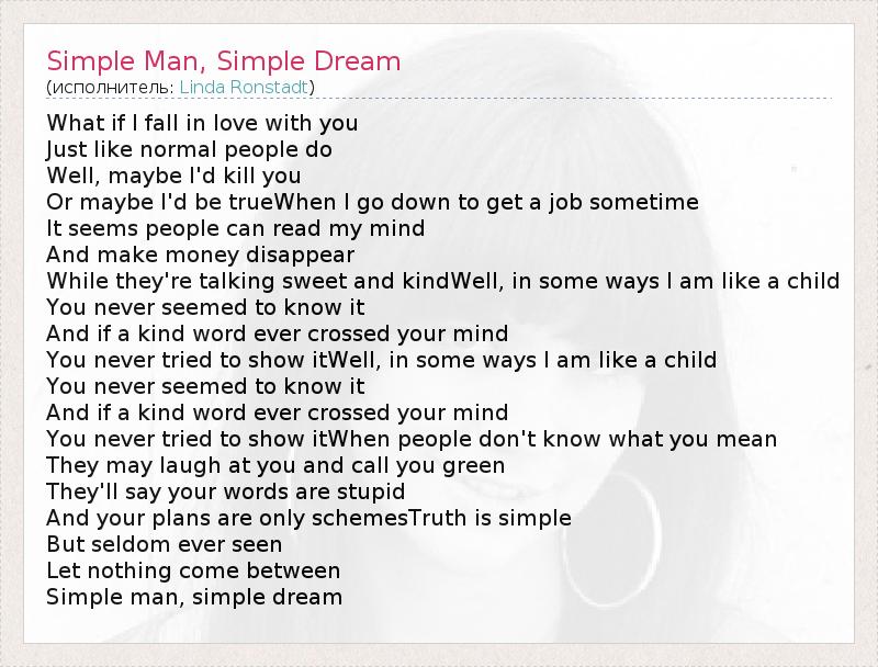 А как ты думаешь, о чем песня "Simple Man, Simple Dream" ?