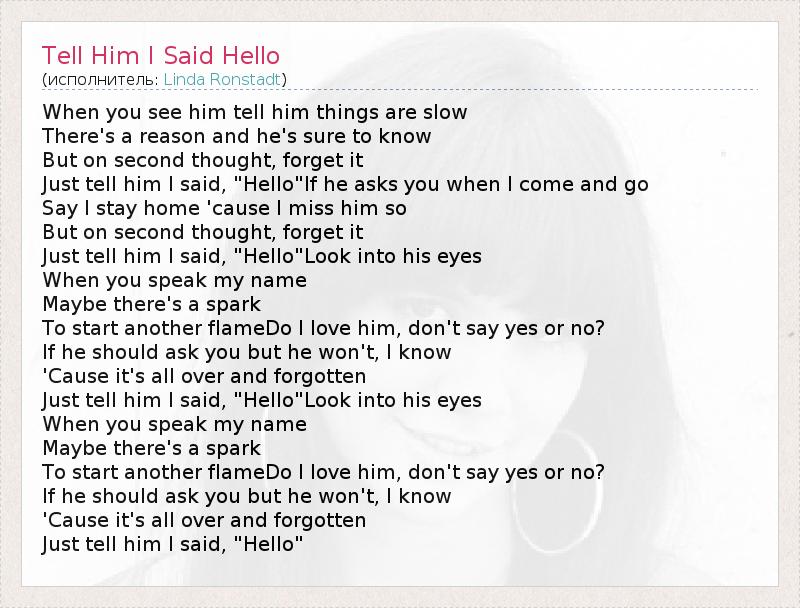А как ты думаешь, о чем песня "Tell Him I Said Hello" ?