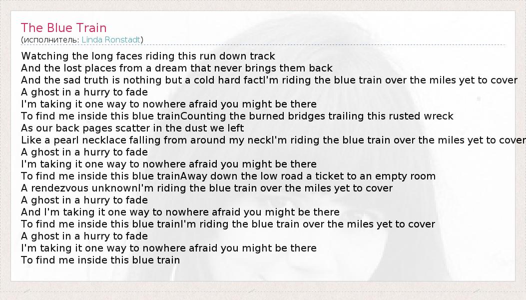 А как ты думаешь, о чем песня "The Blue Train" ?