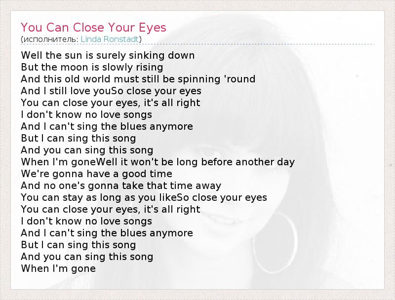 А как ты думаешь, о чем песня "You Can Close Your Eyes" ?