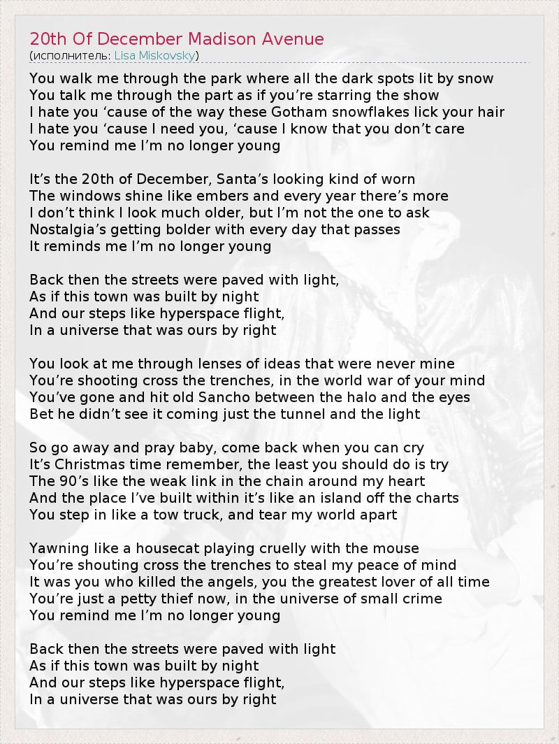 ГлавнаяИсполнителиLisa Miskovsky20th Of December Madison Avenue