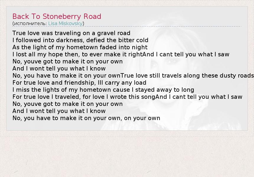 А как ты думаешь, о чем песня "Back To Stoneberry Road" ?