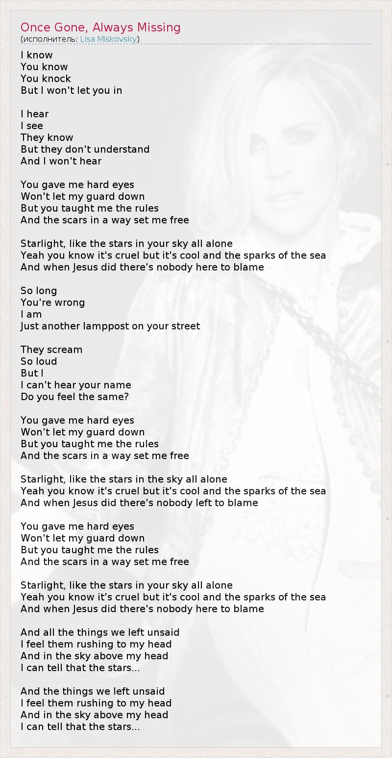 ГлавнаяИсполнителиLisa MiskovskyOnce Gone, Always Missing