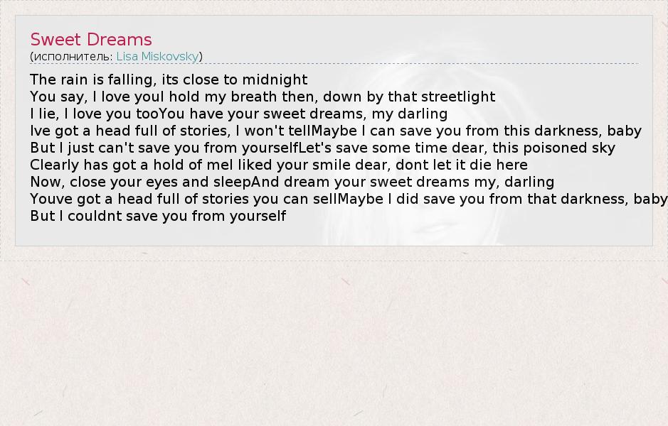 А как ты думаешь, о чем песня "Sweet Dreams" ?