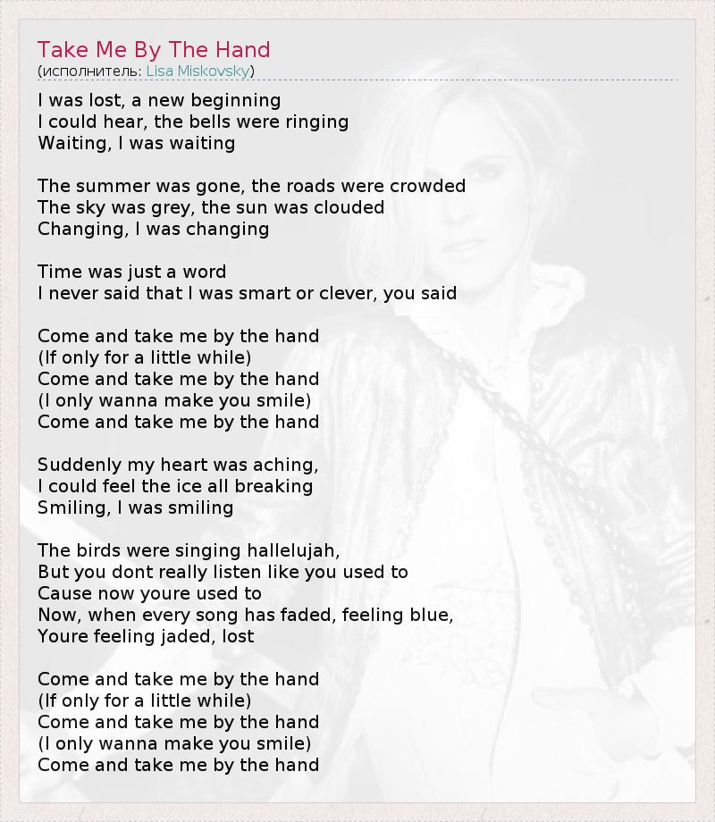 А как ты думаешь, о чем песня "Take Me By The Hand" ?