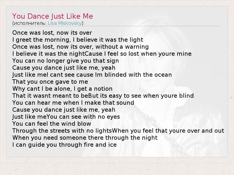 А как ты думаешь, о чем песня "You Dance Just Like Me" ?