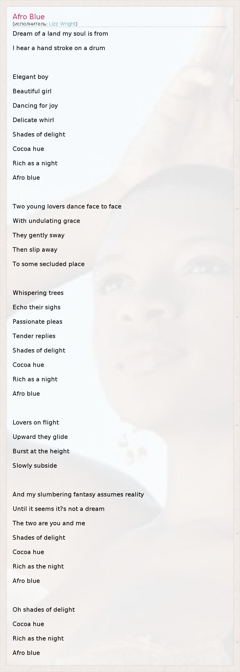А как ты думаешь, о чем песня "Afro Blue" ?