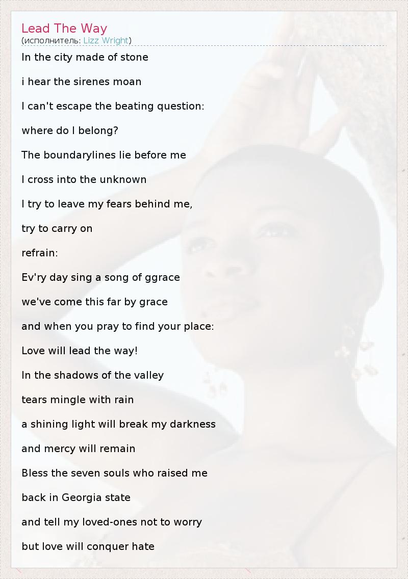 А как ты думаешь, о чем песня "Lead The Way" ?