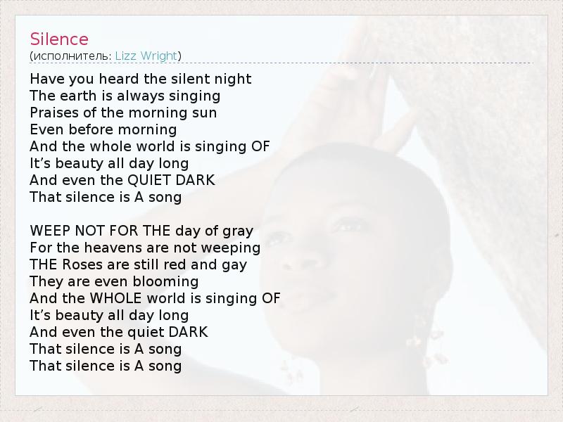 Это интересно:С кем только ни сравнивали джазовую певицу и композитора Лиз Райт – с Ниной Саймон и Норой Джонс, Кассандрой Уилсон и Джилл Скотт, Трейси Чепмен и Олетой Адамс, Дайаной Кролл и Анитой Бейкер, Эбби Линкольн, Региной Белль и даже Терри Каллье. В этих сравнениях не было упрека, они звучали скорее как изысканный комплимент. Причина такой щедрости критиков кроется в самом подходе артистки к... продолжение