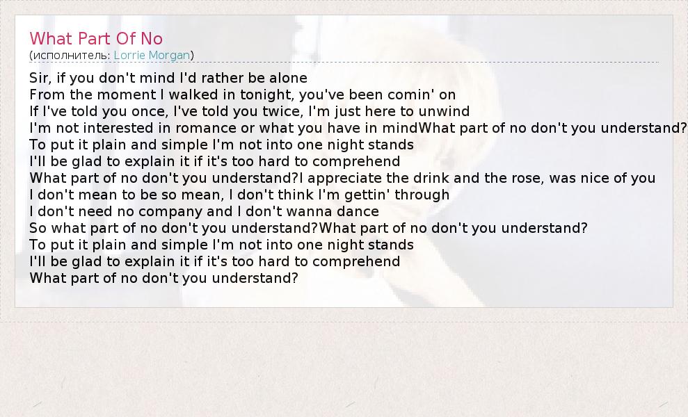 А как ты думаешь, о чем песня "What Part Of No" ?