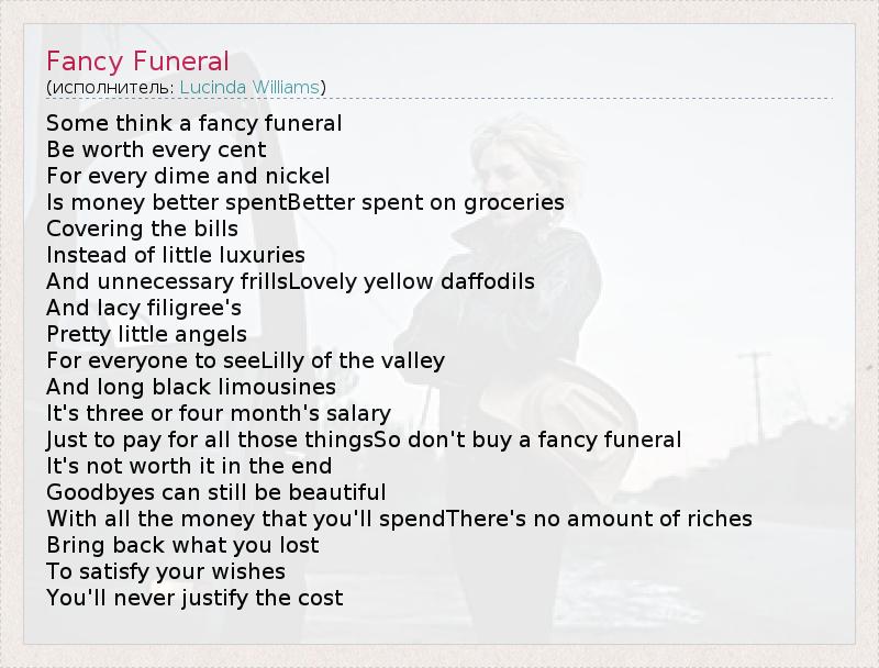 А как ты думаешь, о чем песня "Fancy Funeral" ?