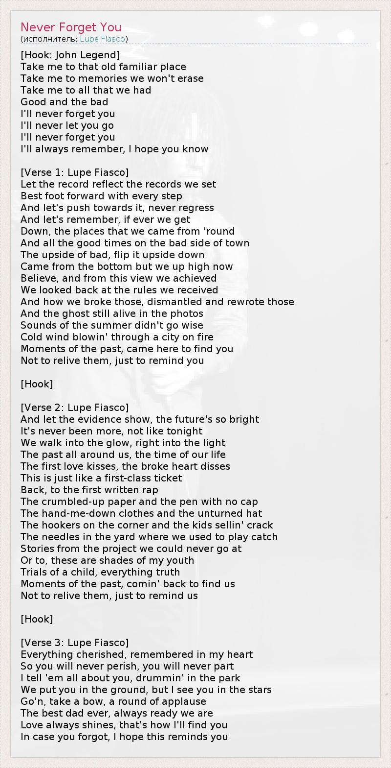 А как ты думаешь, о чем песня "Never Forget You" ?