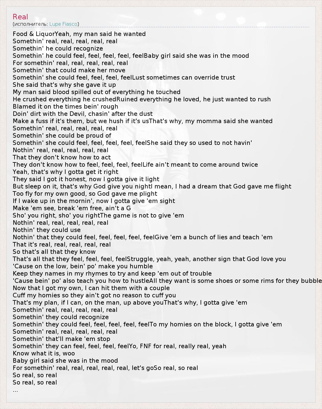 For somethin' real, real, real, real, real, let's goSo real, so real