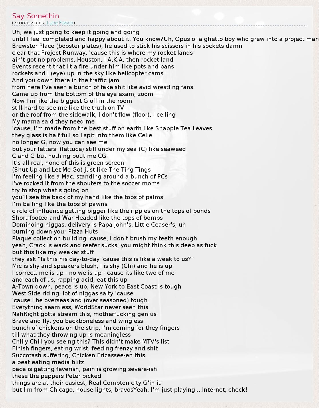 А как ты думаешь, о чем песня "Say Somethin" ?