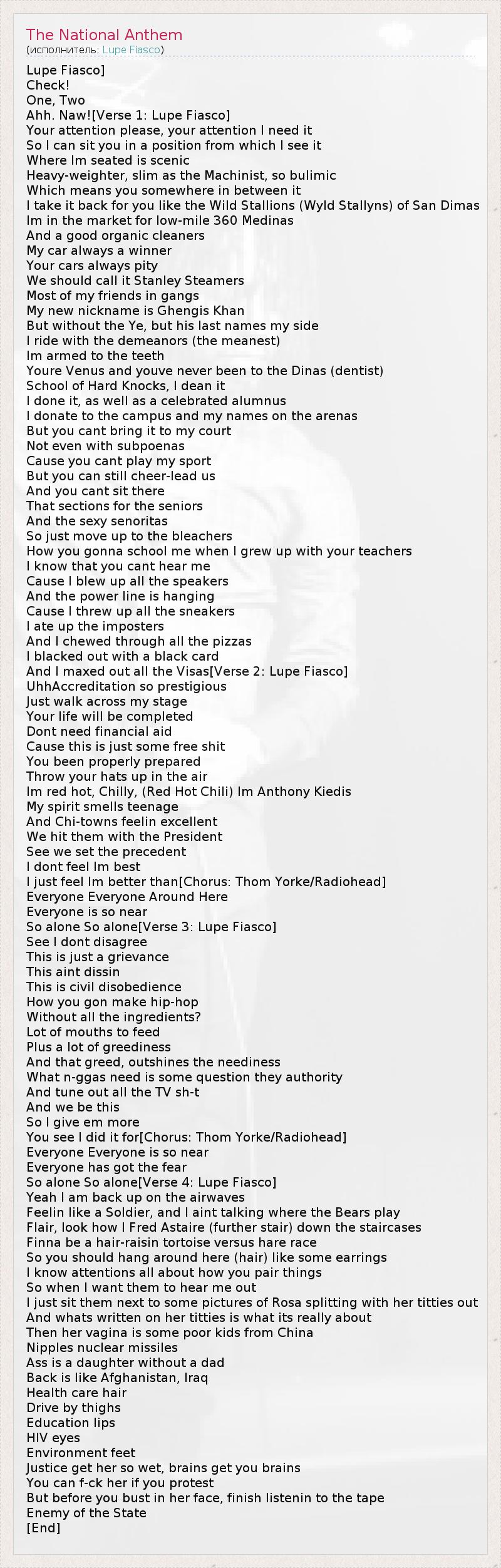 А как ты думаешь, о чем песня "The National Anthem" ?