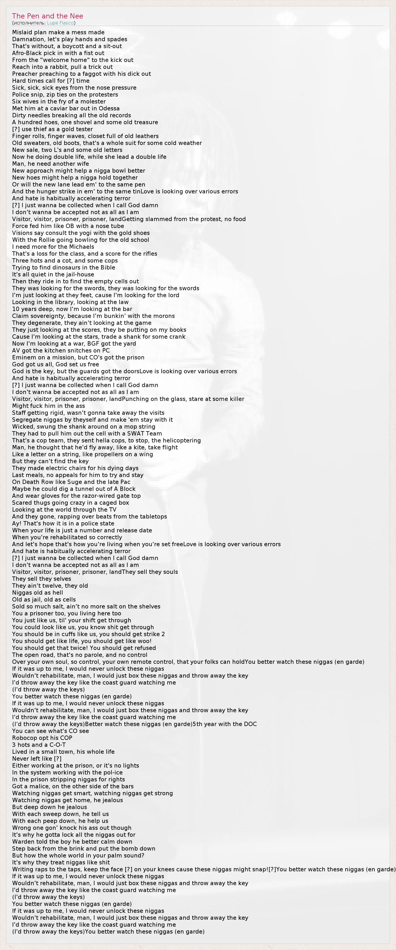 А как ты думаешь, о чем песня "The Pen and the Nee" ?