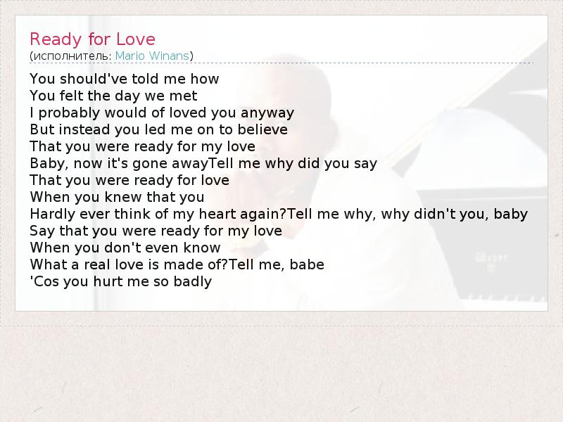 А как ты думаешь, о чем песня "Ready for Love" ?