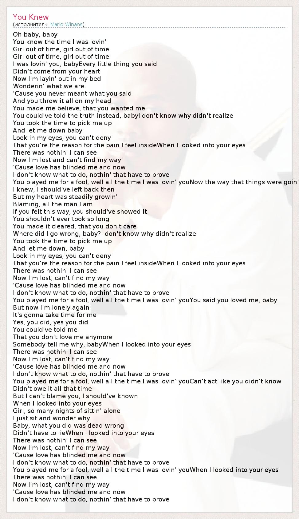 А как ты думаешь, о чем песня "You Knew" ?