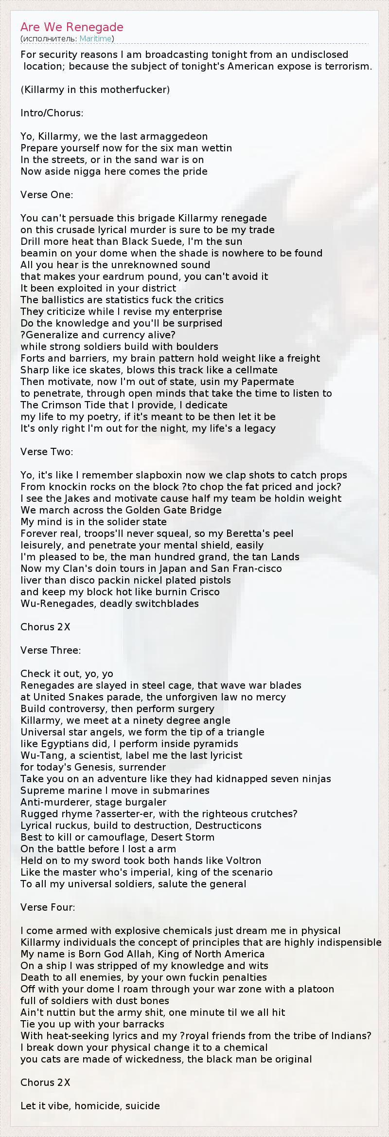 А как ты думаешь, о чем песня "Are We Renegade" ?