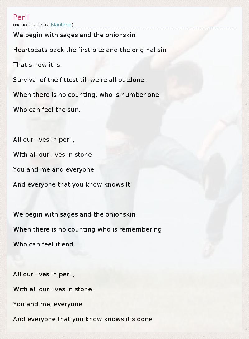 А как ты думаешь, о чем песня "Peril" ?