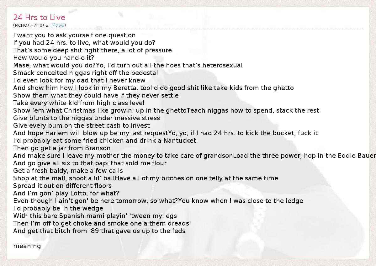 А как ты думаешь, о чем песня "24 Hrs to Live" ?
