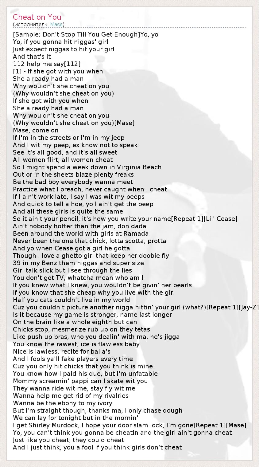 А как ты думаешь, о чем песня "Cheat on You" ?