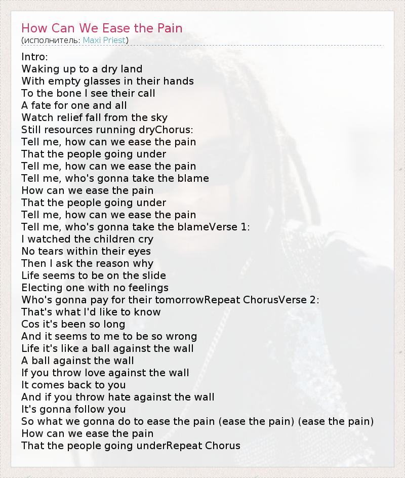 А как ты думаешь, о чем песня "How Can We Ease the Pain" ?