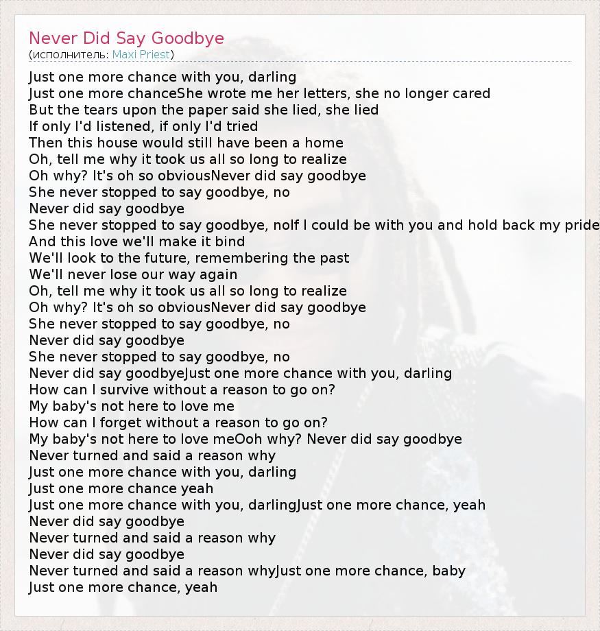 А как ты думаешь, о чем песня "Never Did Say Goodbye" ?