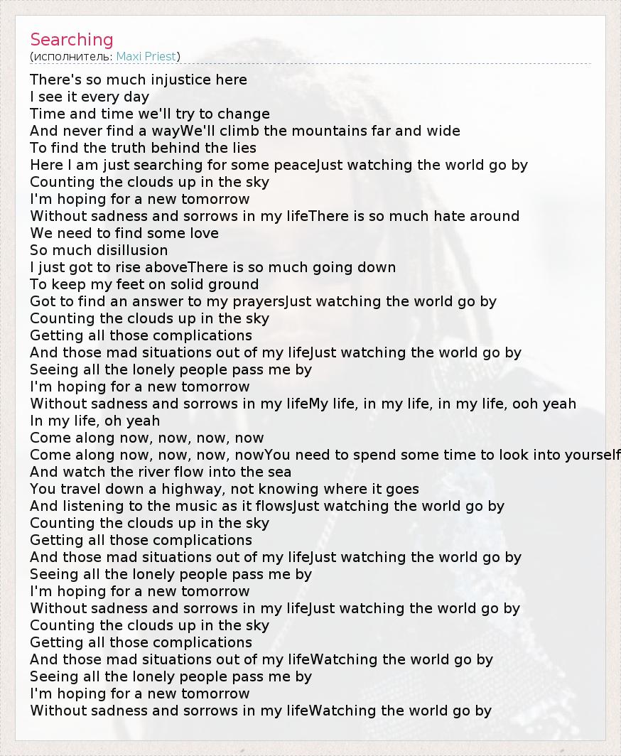 А как ты думаешь, о чем песня "Searching" ?