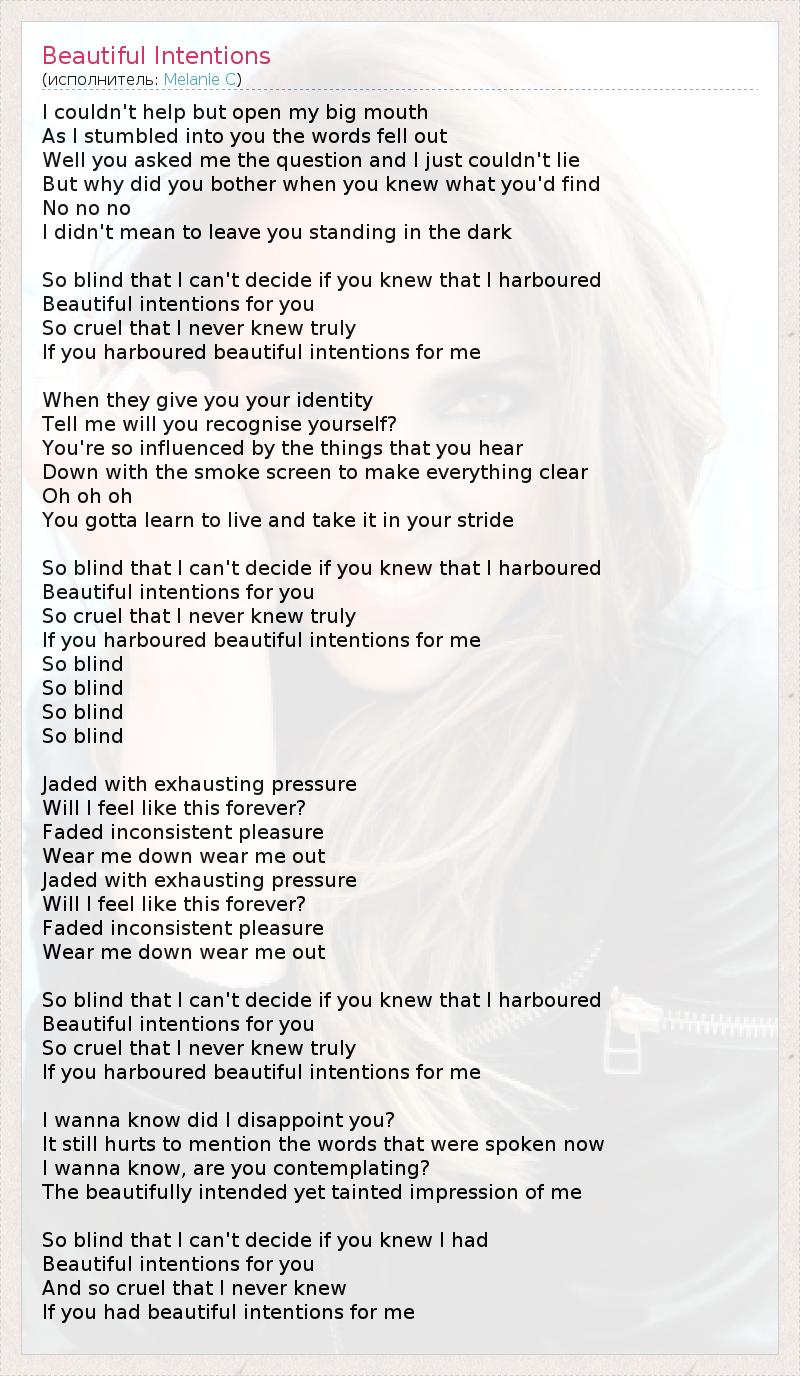 А как ты думаешь, о чем песня "Beautiful Intentions" ?