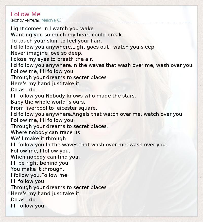 I'd follow you anywhere.Angels that watch over me, watch over you.