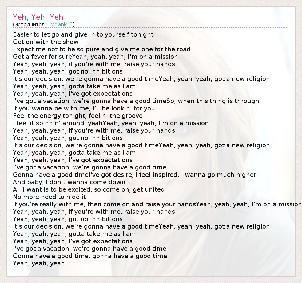 А как ты думаешь, о чем песня "Yeh, Yeh, Yeh" ?