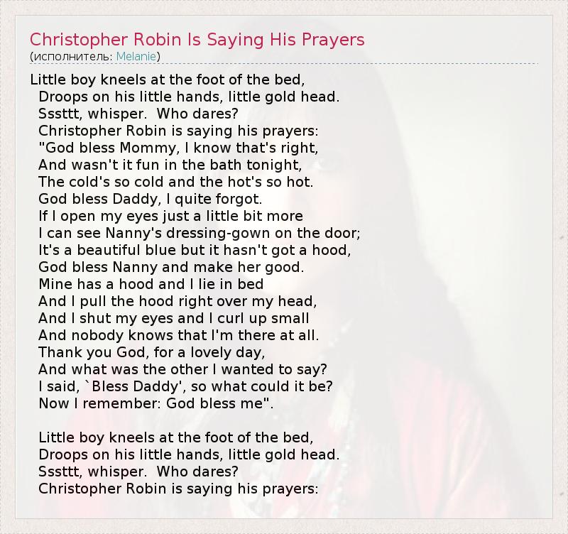 ГлавнаяИсполнителиMelanieChristopher Robin Is Saying His Prayers