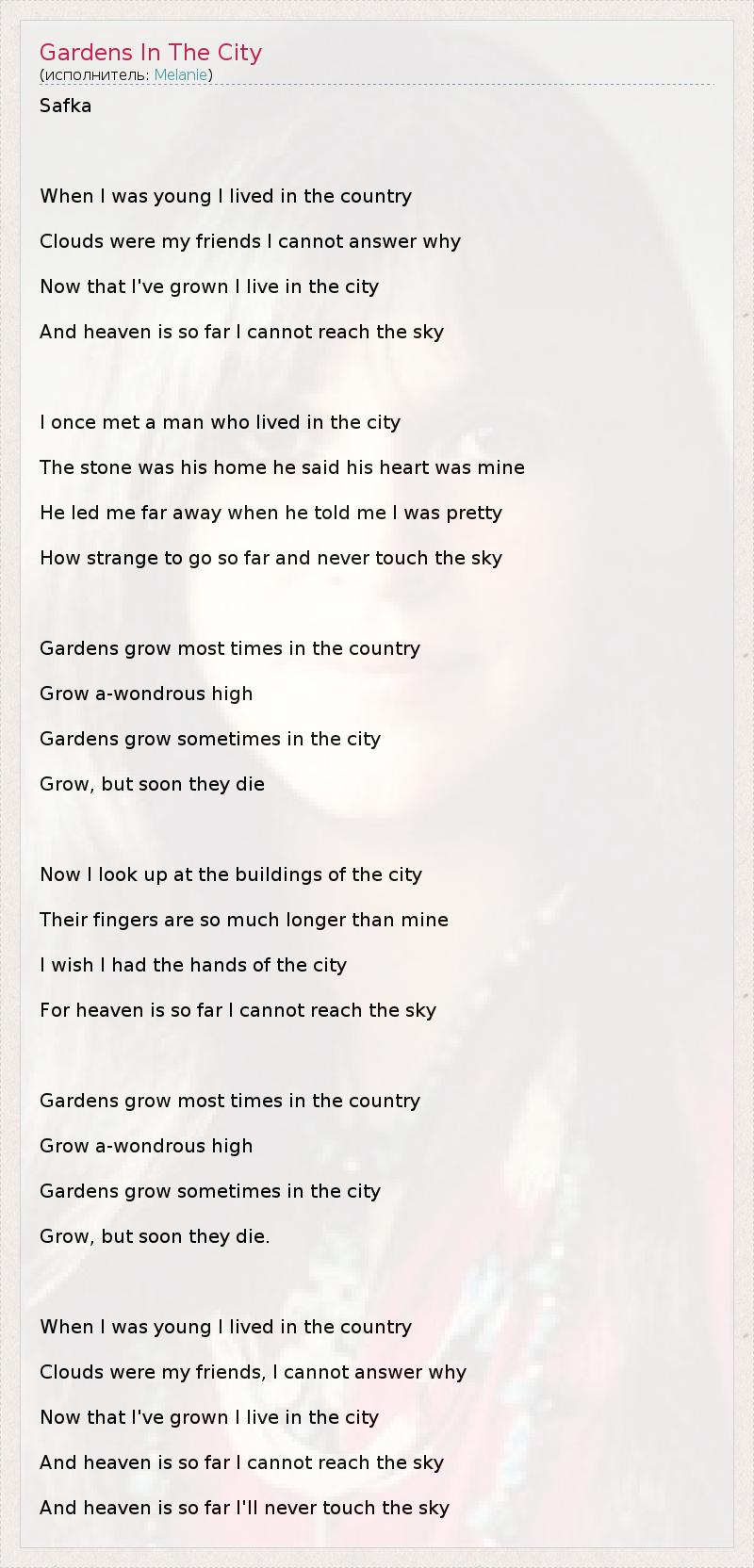 А как ты думаешь, о чем песня "Gardens In The City" ?