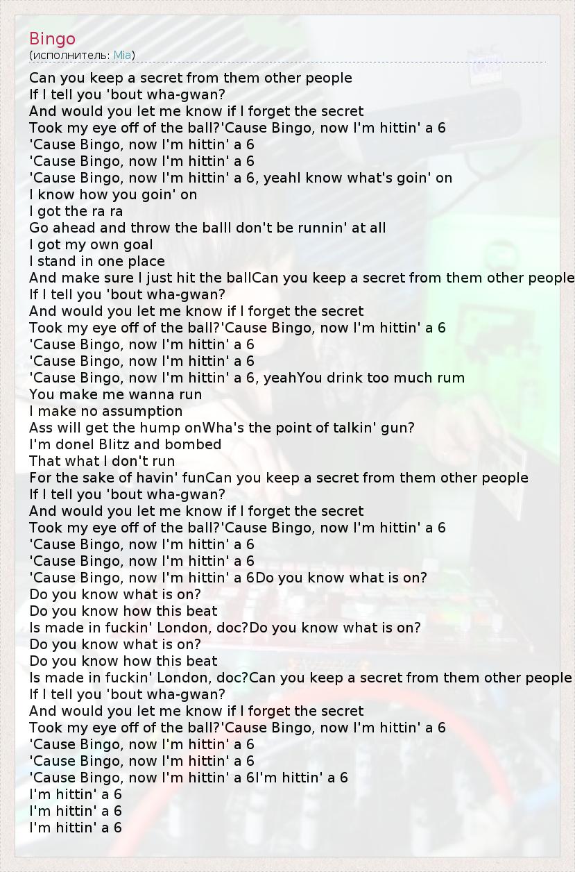 'Cause Bingo, now I'm hittin' a 6Do you know what is on?