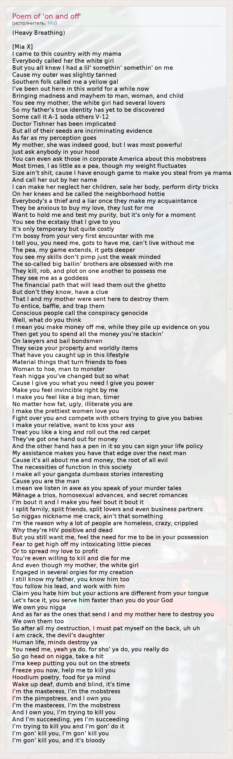 ГлавнаяИсполнителиMiaPoem of 'on and off'