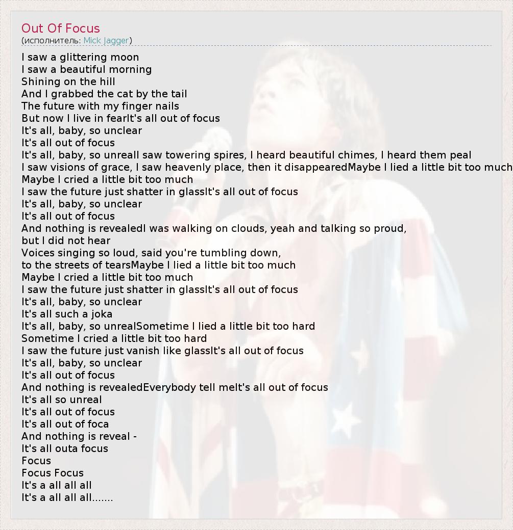 А как ты думаешь, о чем песня "Out Of Focus" ?