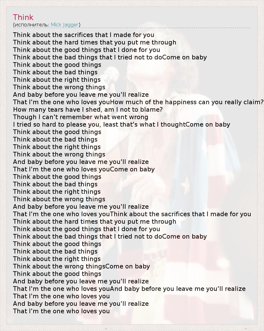 That I'm the one who loves youThink about the sacrifices that I made for you