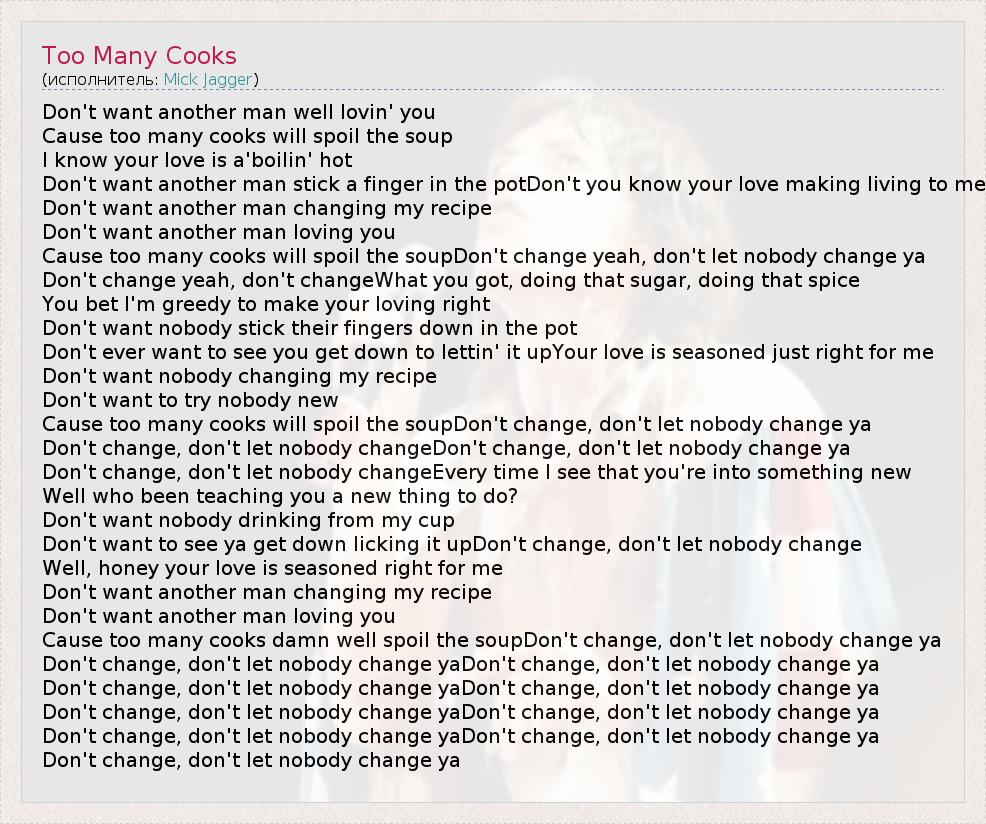 А как ты думаешь, о чем песня "Too Many Cooks" ?