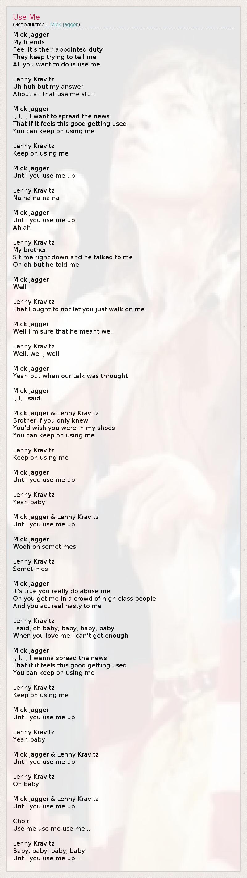 А как ты думаешь, о чем песня "Use Me" ?