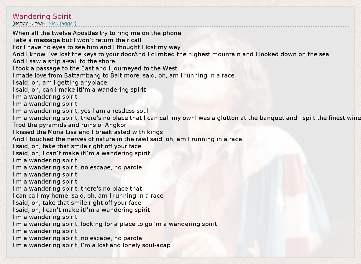 А как ты думаешь, о чем песня "Wandering Spirit" ?