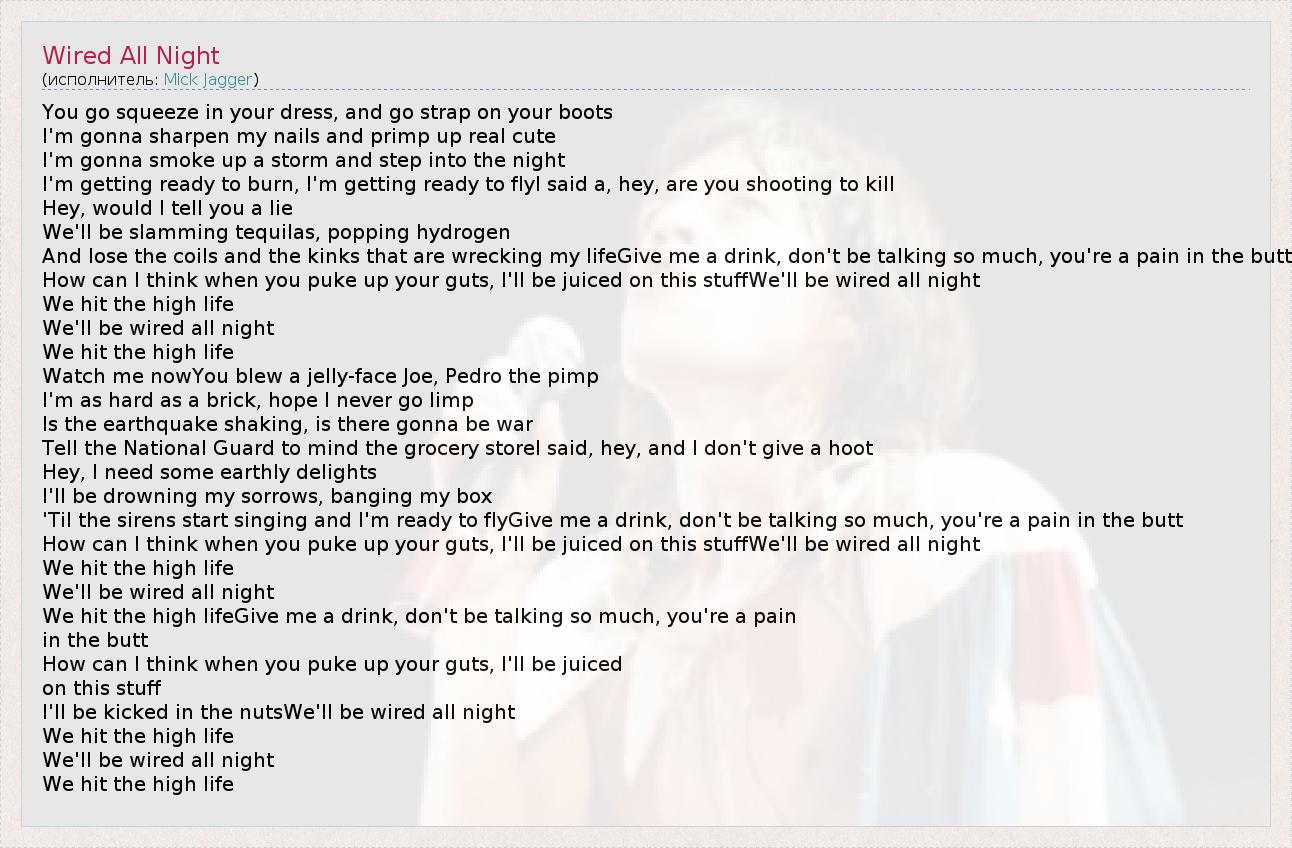 А как ты думаешь, о чем песня "Wired All Night" ?