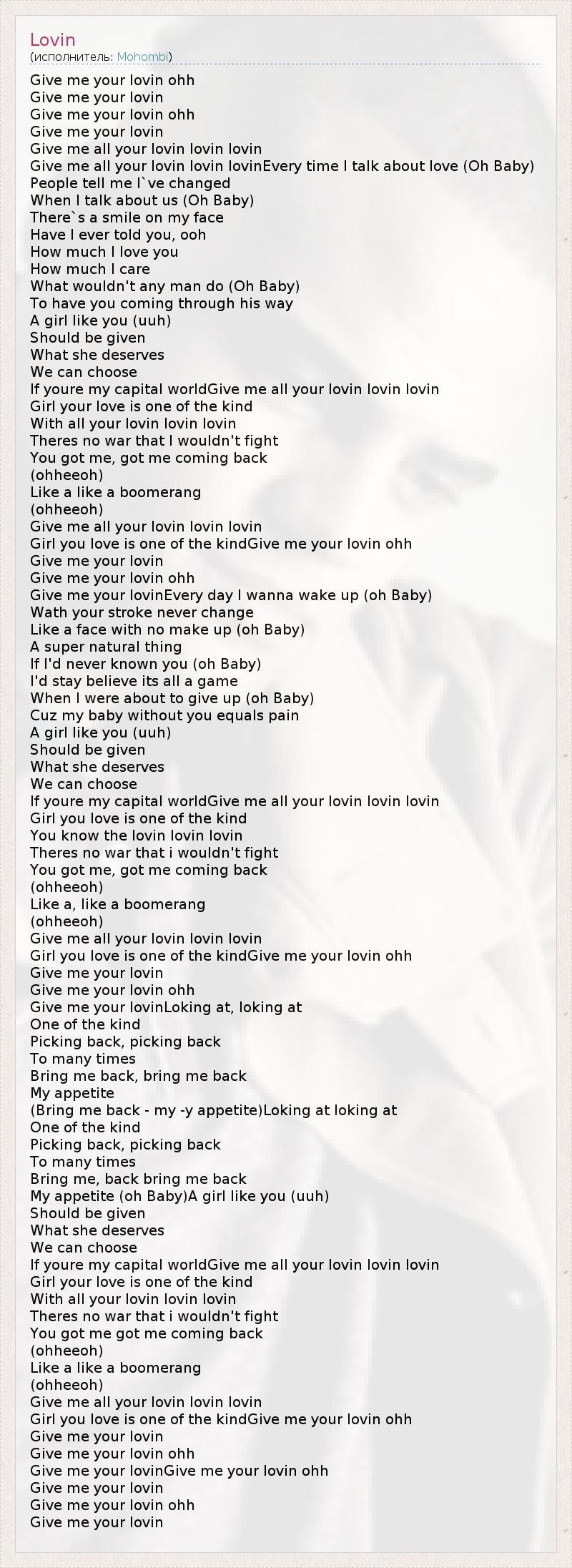 Give me all your lovin lovin lovinEvery time I talk about love (Oh Baby)