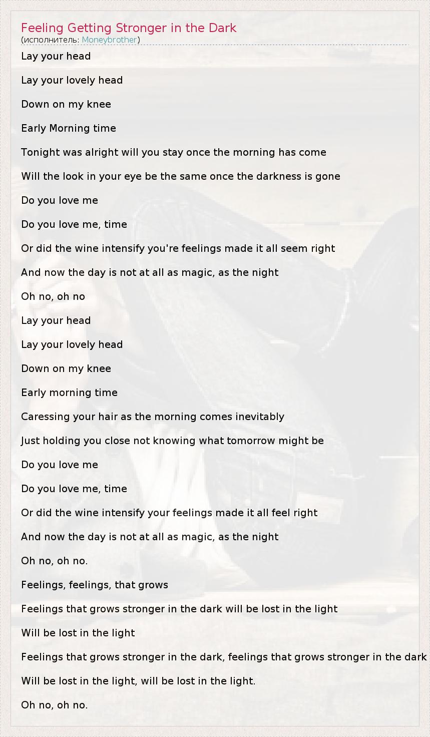 А как ты думаешь, о чем песня "Feeling Getting Stronger in the Dark" ?