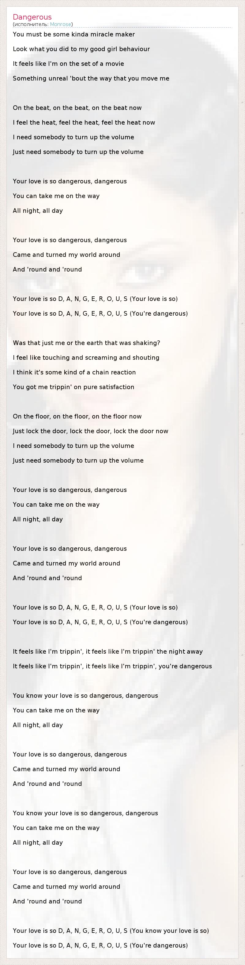 А как ты думаешь, о чем песня "Dangerous" ?