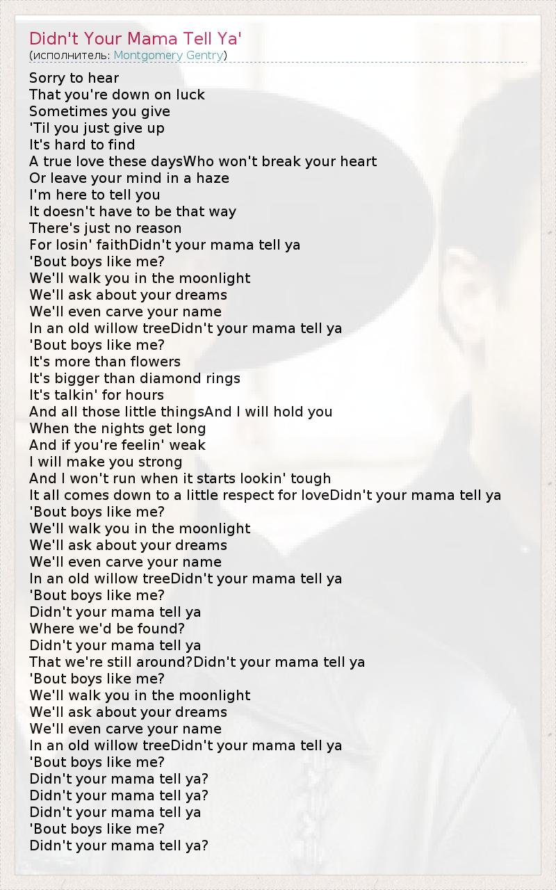 А как ты думаешь, о чем песня "Didn't Your Mama Tell Ya'" ?