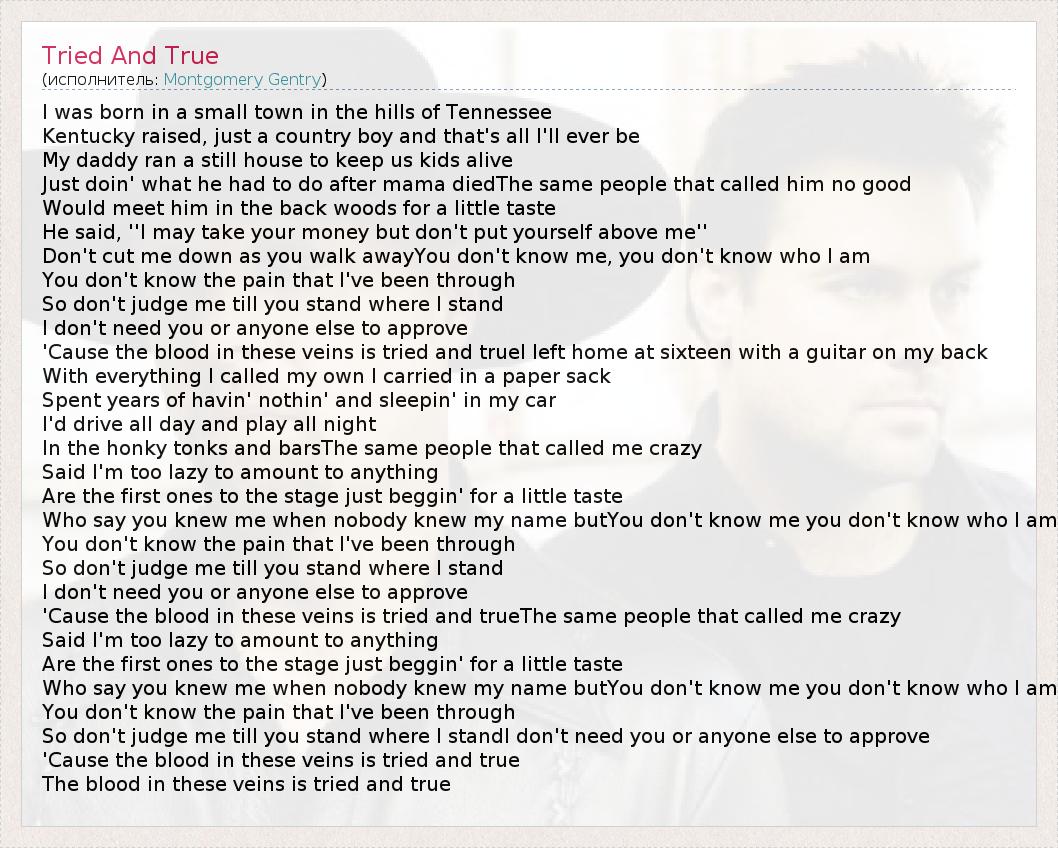 А как ты думаешь, о чем песня "Tried And True" ?